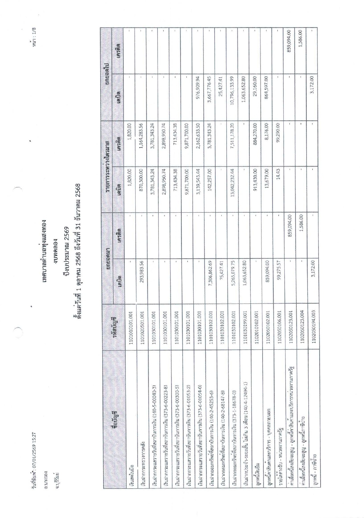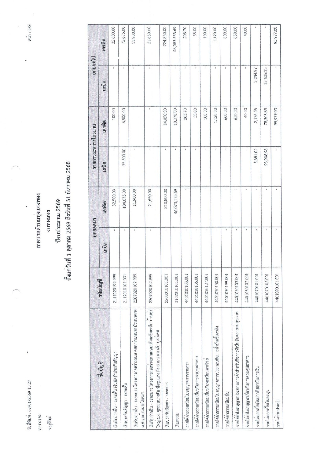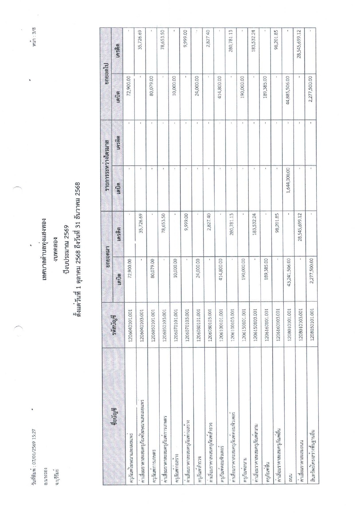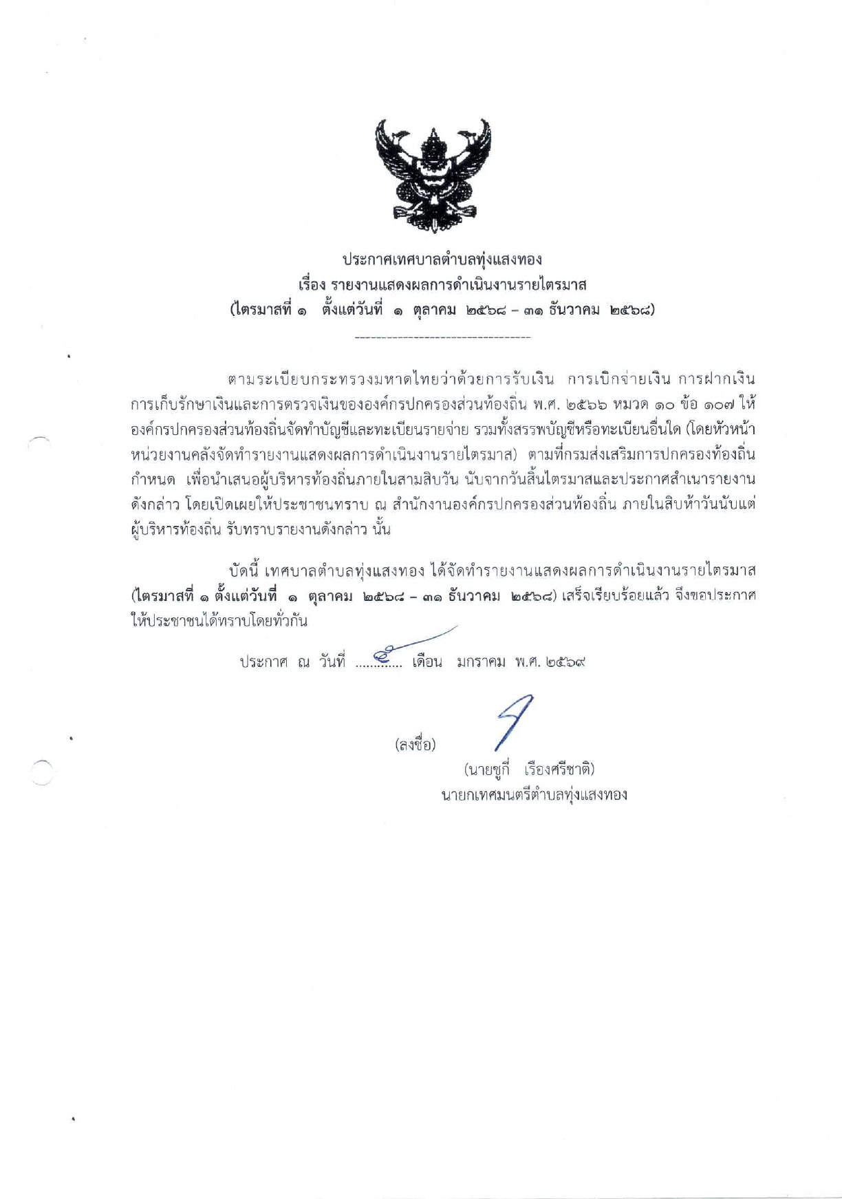 ประกาศเทศบาลตำบลทุ่งแสงทอง เรื่อง รายงานแสดงผลการดำเนินงานรายไตรมาส (ไตรมาสที่ 1 ตั้งแต่ 1 ตุลาคม 2568 - 31 ธันวาคม 2568)