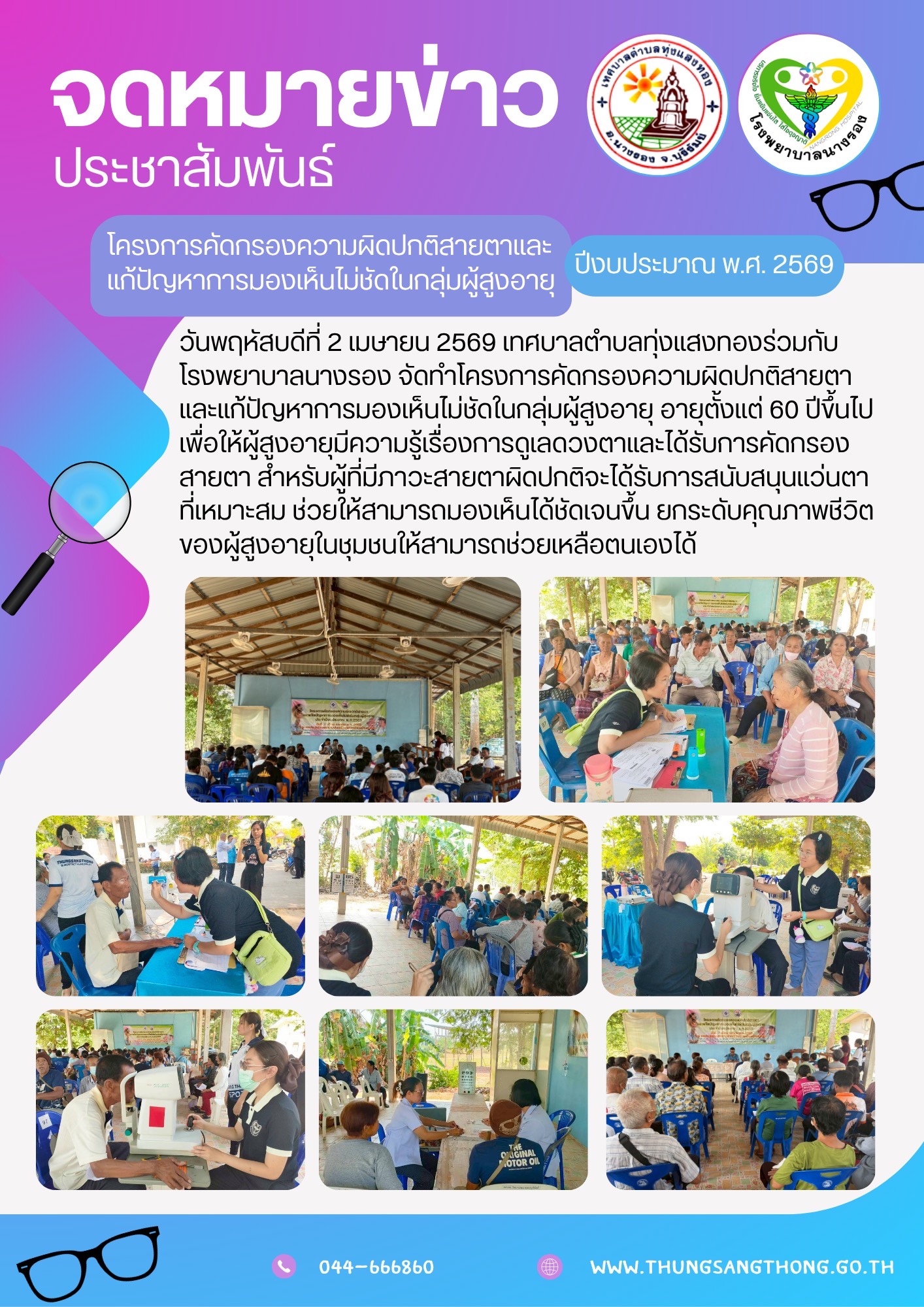โครงการคัดกรองความผิดปกติสายตาและแก้ปัญหาการมองเห็นไม่ชัดในกลุ่มผู้สูงอายุ
