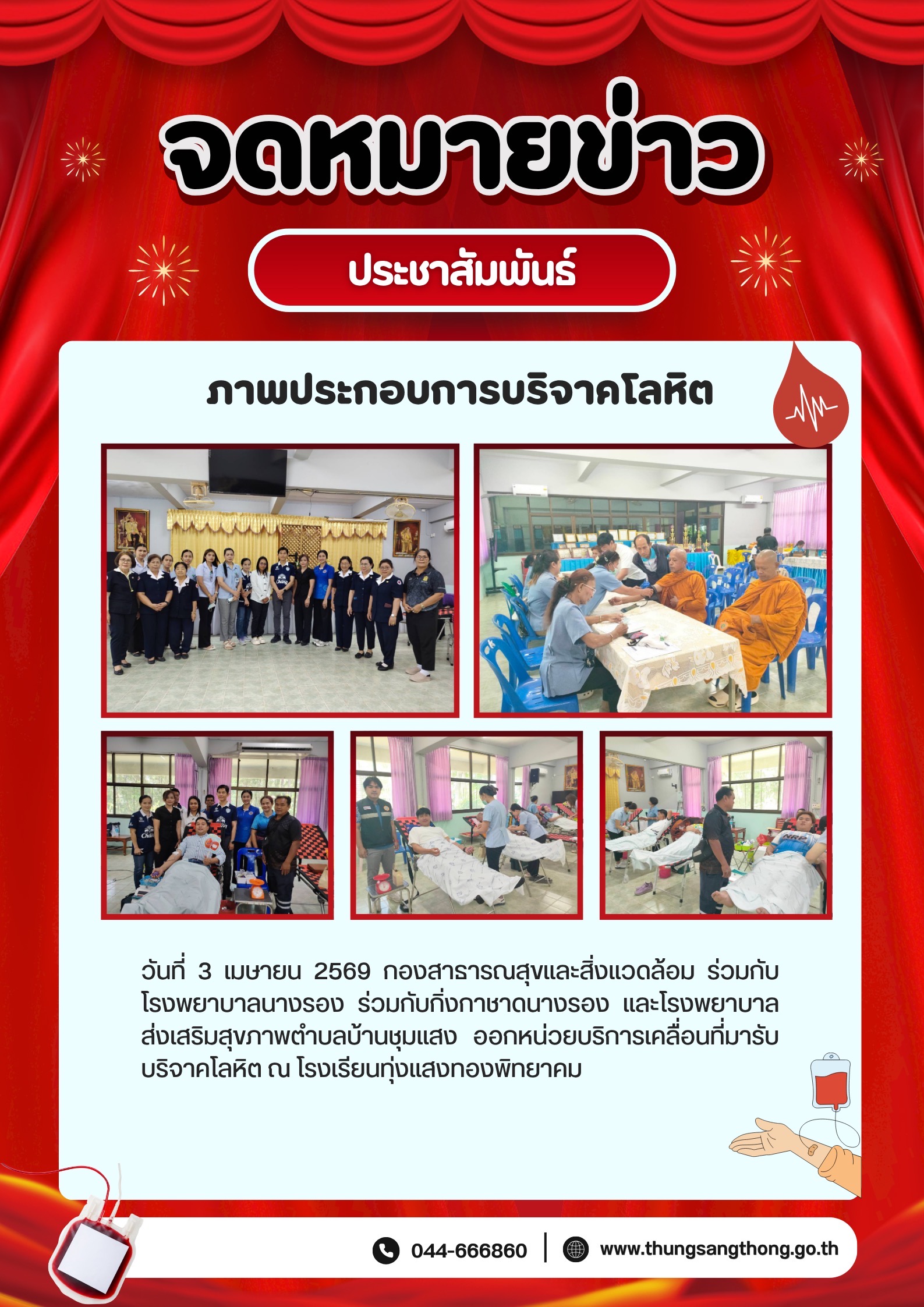 การรับบริจาคโลหิต วันที่ 3 เมษายน 2569 ณ โรงเรียนทุ่งแสงทองพิทยาคม